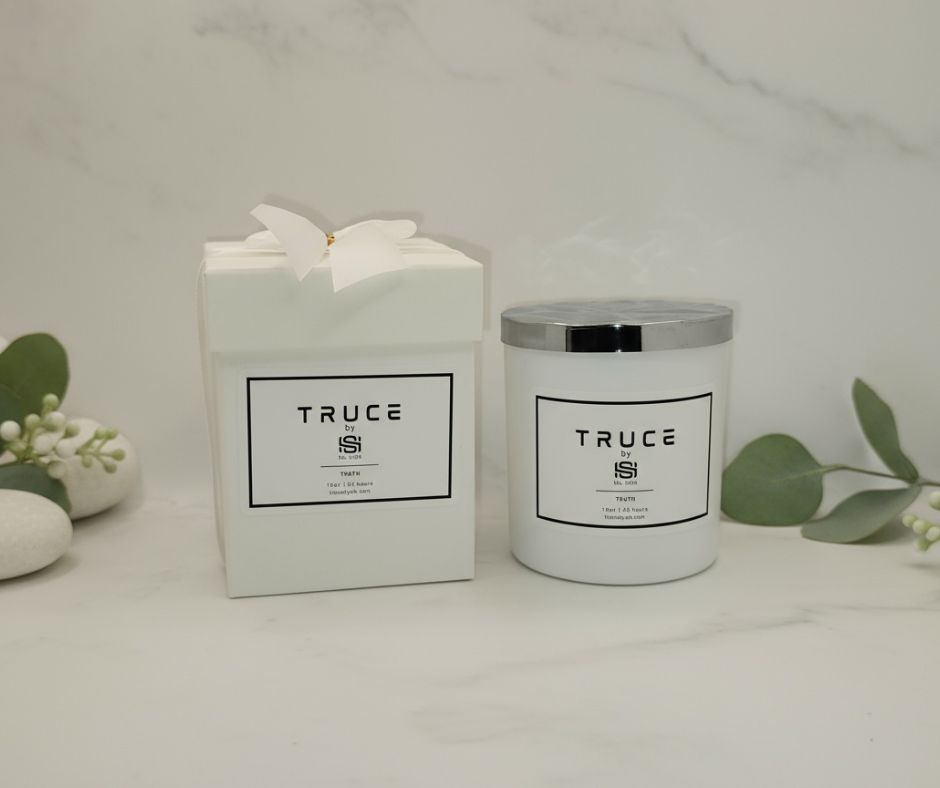 Each candle is housed in a beautifully crafted vessel, offered in two elegant color options to complement any décor (black or white). The packaging reflects our heart-engaged commitment to quality, sealing in the essence of care, craftsmanship, and intention that defines every TRUCE product. These candles are more than just a source of light—they’re a symbol of meaning and mindfulness for your journey.