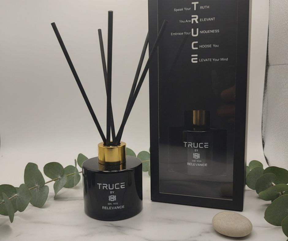 TRUCE diffusers in the fragrance Relevance are designed to create a serene and grounding ambiance in any space. The captivating aroma combined blend of vanilla musk and sandalwood create a capitivating aroma. TRUCE diffusers are more than just a scent; they are a reminder to Our diffuser is a reminder to diffuse the negative energy around you and affirm what is good, embracing the moments of calm and clarity. Be intentional about what you put in your space.